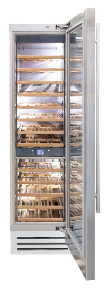 Винный холодильник Fhiaba KS600FW6 имеет две температурные зоны, в которых одновременно можно хранить разные сорта алкоголя и выставлять разные сочетания настроек. Он встраивается в нишу, что удобно, если у вас ограничен метраж помещения. Количество бутылок, которое можно разместить с учетом полной комплектации и из расчета объема бутылки 0,75 л, — 78 шт.