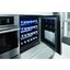 Встраиваемые холодильники для вина оснащаются специальной системой вентиляции: охлаждающая система у них находится в нижней части корпуса спереди. На такие устройства не навешивается мебельный фасад: дверца с затемненным стеклом остается на виду и открывается на достаточно широкий угол для свободного выдвижения деревянных полок.