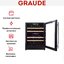 Винный холодильник Graude FWK 80.1 имеет две температурные зоны, в которых одновременно можно хранить разные сорта алкоголя и выставлять разные сочетания настроек. Он встраивается в нишу, что удобно, если у вас ограничен метраж помещения. Благодаря компактным размерам данная модель — отличный выбор для офиса, гостиничного номера. Количество бутылок, которое можно разместить с учетом полной комплектации и из расчета объема бутылки 0,75 л, — 49 шт.