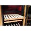 Полки в винных шкафах позволяют размещать бутылки для хранения в горизонтальном положении. Это необходимо, чтобы пробка постоянно смачивалась жидкостью и не пересыхала. Плотно закрытая пробка гарантирует, что внутрь бутылки не проникнет наружный воздух. Кислород, содержащийся в воздухе, может стать причиной ухудшения вкуса вина и даже его скисания. Кроме того, горизонтальное положение позволяет лучше оценить количество осадка. Материал изготовления полок выбирается, исходя из требований, предъявляемых к содержанию коллекции вин. Одним из основных требования является отсутствие или максимальное сокращение вибрации и хорошая фиксация бутылок на месте хранения. Даже если полка выдвигается, бутылки должны оставаться на своем месте. Второе требование исключает применение стеклянных полок, как в обычном холодильнике: на них почти невозможно зафиксировать бутылки.