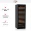 Вместимость составляет 165 бутылок типа бордо, которые располагаются горизонтально на пятнадцати полках. Они выполнены из дерева, что считается наиболее рациональным для такого вида прибора, отсутствует деформация и потеря внешнего вида. Винный шкаф подходит для хранения напитков, требующих одинаковых условий, т. к. имеет одну климатическую зону, в который температура может варьироваться от +5 до +18 градусов.