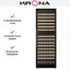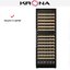 Электронное управление помогает быстро разобраться в том, как функционирует эта модель, и легко настроить все необходимые параметры. На дисплее отображаются данные, которые собирают датчики в камере. Лампочки, расположенные внутри, хорошо подсвечивают бутылки. Всего полок, на которых можно разместить коллекцию, в шкафу 14 шт.