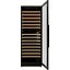 Стеклянная дверь — дополнительный изящный штрих к общему дизайну модели. Специальное покрытие защищает вино от влияния ультрафиолетовых лучей, которые проникают, если шкаф находится в солнечной комнате. Цвет корпуса — черный. Дверь можно перевесить на другую сторону, поэтому вариантов размещения его в доме становится больше.