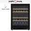 Электронное управление помогает быстро разобраться в том, как функционирует эта модель, и легко настроить все необходимые параметры. На дисплее отображаются данные, которые собирают датчики в камере. Лампочки, расположенные внутри, хорошо подсвечивают бутылки. Всего полок, на которых можно разместить коллекцию, в шкафу 4 шт.