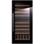 Стеклянная дверь — дополнительный изящный штрих к общему дизайну модели. Специальное покрытие защищает вино от влияния ультрафиолетовых лучей, которые проникают, если шкаф находится в солнечной комнате. Цвет корпуса — черный. Дверь можно перевесить на другую сторону, поэтому вариантов размещения его в доме становится больше.