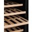 Полки в винных шкафах позволяют размещать бутылки для хранения в горизонтальном положении. Это необходимо, чтобы пробка постоянно смачивалась жидкостью и не пересыхала. Плотно закрытая пробка гарантирует, что внутрь бутылки не проникнет наружный воздух. Кислород, содержащийся в воздухе, может стать причиной ухудшения вкуса вина и даже его скисания. Кроме того, горизонтальное положение позволяет лучше оценить количество осадка. Материал изготовления полок выбирается, исходя из требований, предъявляемых к содержанию коллекции вин. Одним из основных требования является отсутствие или максимальное сокращение вибрации и хорошая фиксация бутылок на месте хранения. Даже если полка выдвигается, бутылки должны оставаться на своем месте. Второе требование исключает применение стеклянных полок, как в обычном холодильнике: на них почти невозможно зафиксировать бутылки.