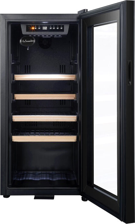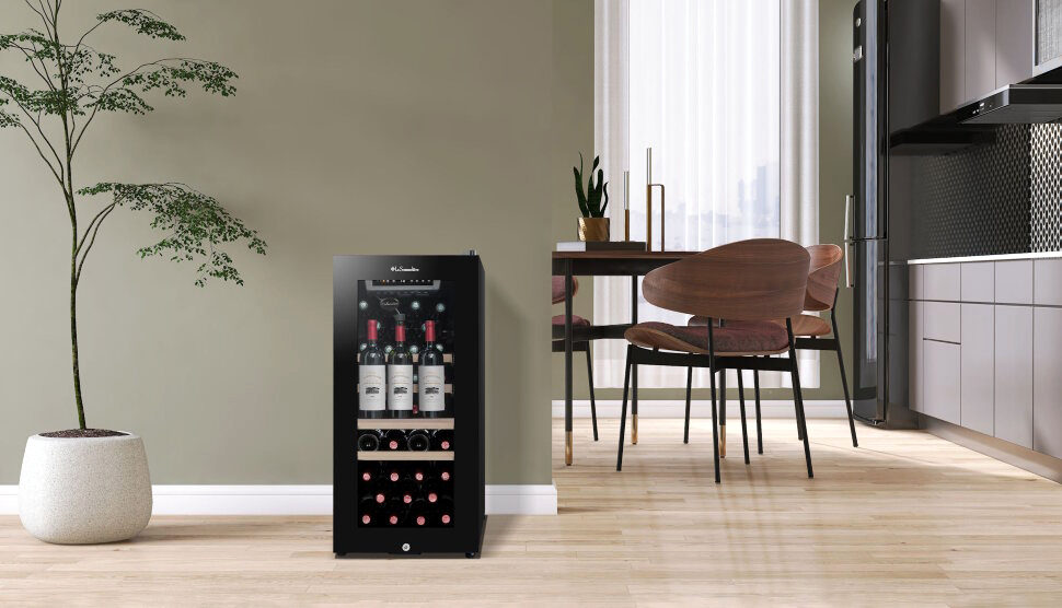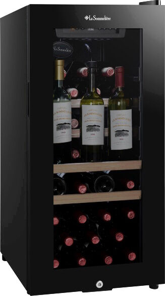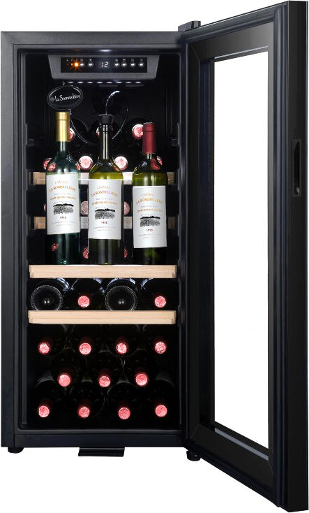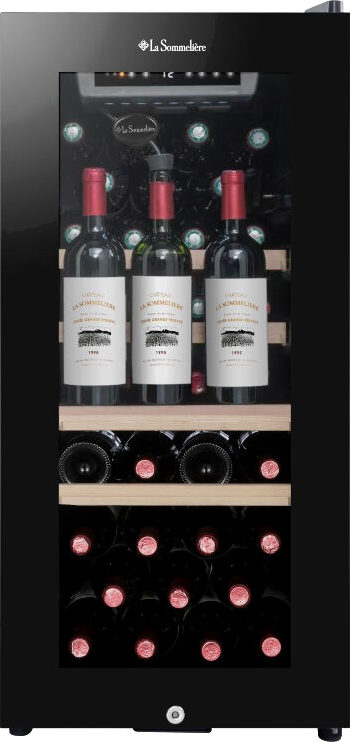 Небольшой монотемпературный винный шкаф LaSommeliere LS38BLACK позволяет хранить до 38 бутылок (типа Бордо). Стеклянная дверца шкафа имеет