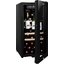 Современные винные шкафы всех типов, в том числе компрессорные, темоэлектрические и абсорбционные, оснащаются электронной системой управления — кнопочной или сенсорной. Панель управления, с помощью которой производится регулировка параметров работы, может размещаться внутри винного шкафа за дверцей или снаружи в верхней части корпуса. Второй вариант более удобен, поскольку для изменения параметров не нужно открывать дверцу. Кроме того, такое расположение панели управления позволяет поддерживать более стабильную температуру в камере. Однако для больших винных шкафов в классическом стиле из ценных пород дерева предпочтительнее скрытая панель управления, которая не портит их внешний вид.