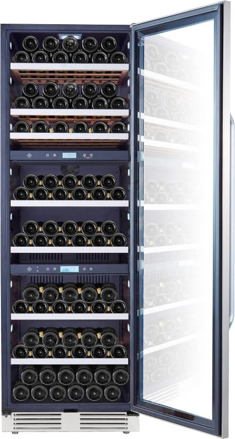 Двухтемпературные предназначены для хранения в разных условиях красного и белого вина. Трехтемпературные — для белого, красного, игристого. Мульти — система хранения из более чем трех зон с разным климатом.