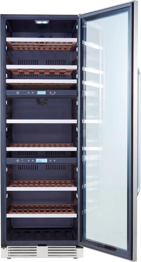 Винный холодильник La Sommeliere MT145TZ имеет несколько температурных зон, в которых одновременно можно хранить разные сорта алкоголя и выставлять разные сочетания настроек. Он устанавливается отдельно, что удобно, если у вас есть специальное помещение — кладовая, погреб и т.д. Количество бутылок, которое можно разместить с учетом полной комплектации и из расчета объема бутылки 0,75 л, — 143 шт.
