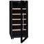 Стеклянная дверь — дополнительный изящный штрих к общему дизайну модели. Специальное покрытие защищает вино от влияния ультрафиолетовых лучей, которые проникают, если шкаф находится в солнечной комнате. Цвет корпуса — черный.