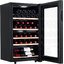 Современные винные шкафы всех типов, в том числе компрессорные, темоэлектрические и абсорбционные, оснащаются электронной системой управления — кнопочной или сенсорной. Панель управления, с помощью которой производится регулировка параметров работы, может размещаться внутри винного шкафа за дверцей или снаружи в верхней части корпуса. Второй вариант более удобен, поскольку для изменения параметров не нужно открывать дверцу. Кроме того, такое расположение панели управления позволяет поддерживать более стабильную температуру в камере. Однако для больших винных шкафов в классическом стиле из ценных пород дерева предпочтительнее скрытая панель управления, которая не портит их внешний вид.