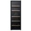 Дверца у большинства винных шкафов изготавливается из многослойного тонированного стекла. Такой материал, с одной стороны, позволяет оценивать коллекцию вин визуально, не открывая дверцу, в условиях стабильной температуры и влажности. С другой стороны, затемненное стекло с УФ-фильтром в виде напыления или специальной пленки надежно изолирует винные бутылки негативного воздействия ультрафиолетового излучения. Несколько слоев стекла обеспечивают при этом дополнительную защиту. Очень часто стекло в дверце заключается в рамку из дерева или металла. Натуральный или окрашенный металл или дерево не только способствуют прочности конструкции, но и превращают винный холодильник, особенно отдельно стоящий, в эффектный элемент обстановки.