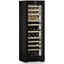 Винный шкаф Liebherr WPGBi-5273 Vinidor Selection. Элегантный внешний вид выполнен в глубоком черном цвете с фронтальной панелью из черной стали и стеклопакетом в тонкой рамке. Скрытая ручка и аккуратная черная облицовка боков добавляют минималистской строгости, а строгие пропорции 185,4×59,7×67,8 см делают прибор заметным, но ненавязчивым элементом интерьера. Конструкция рассчитана как отдельно стоящая, поэтому его легко вписать в домашнюю винную комнату или бар профессионального уровня.