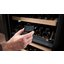 Современные винные шкафы всех типов, в том числе компрессорные, темоэлектрические и абсорбционные, оснащаются электронной системой управления — кнопочной или сенсорной. Панель управления, с помощью которой производится регулировка параметров работы, может размещаться внутри винного шкафа за дверцей или снаружи в верхней части корпуса. Второй вариант более удобен, поскольку для изменения параметров не нужно открывать дверцу. Кроме того, такое расположение панели управления позволяет поддерживать более стабильную температуру в камере. Однако для больших винных шкафов в классическом стиле из ценных пород дерева предпочтительнее скрытая панель управления, которая не портит их внешний вид.