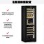 Стеклянная дверь — дополнительный изящный штрих к общему дизайну модели. Специальное покрытие защищает вино от влияния ультрафиолетовых лучей, которые проникают, если шкаф находится в солнечной комнате. Цвет корпуса — черный. Дверь можно перевесить на другую сторону, поэтому вариантов размещения его в доме становится больше. Доводчик делает открытие и закрытие плавным.