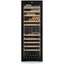 Стеклянная дверь — дополнительный изящный штрих к общему дизайну модели. Специальное покрытие защищает вино от влияния ультрафиолетовых лучей, которые проникают, если шкаф находится в солнечной комнате. Цвет корпуса — черный. Дверь можно перевесить на другую сторону, поэтому вариантов размещения его в доме становится больше. Доводчик делает открытие и закрытие плавным.