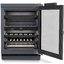 Электронное управление помогает быстро разобраться в том, как функционирует эта модель, и легко настроить все необходимые параметры. На дисплее отображаются данные, которые собирают датчики в камере. Лампочки, расположенные внутри, хорошо подсвечивают бутылки. Всего полок, на которых можно разместить коллекцию, в шкафу 5 шт.