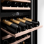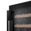 Стеклянная дверь — дополнительный изящный штрих к общему дизайну модели. Специальное покрытие защищает вино от влияния ультрафиолетовых лучей, которые проникают, если шкаф находится в солнечной комнате. Цвет корпуса — черный.