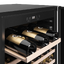 Стеклянная дверь — дополнительный изящный штрих к общему дизайну модели. Специальное покрытие защищает вино от влияния ультрафиолетовых лучей, которые проникают, если шкаф находится в солнечной комнате. Цвет корпуса — черный.