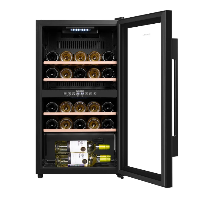 Двухтемпературная схема даёт возможность хранить разные сорта при оптимальных режимах в диапазоне 5-22 °C и подбирать условия под конкретные вина. Диапазон влажности 50-80% помогает сохранить корки в хорошем состоянии и предотвращает их усыхание при длительном хранении. Компрессорное охлаждение со стандартным компрессором и хладагентом R600a обеспечивает стабильность заданной температуры и устойчивость к внешним колебаниям климата SN/N/ST. Разморозка выполняется вручную, что упрощает конструкцию и облегчает обслуживание при необходимости.