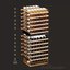 Самым подходящим материалом для изготовления полок, по мнению специалистов, является натуральное не лакированное дерево — бук, дуб, сосна, лиственница. У него множество преимуществ: прежде всего оно способно гасить мелкие вибрации. Дерево хорошо поддается обработке: решетчатые полки, например, позволяют хорошо зафиксировать бутылки, так что они не будут качаться при выдвижении. Кроме того, дерево почти не впитывает запахи и при понижении температуры на нем не образуется конденсат. В некоторых моделях применяются комбинированные полки с металлическим каркасом и деревянными держателями бутылок, а также полностью металлические. Недостаток их — образование конденсата, а значит, изменение уровня влажности, которое может привести также к порче этикеток. Самый бюджетный и наименее эффектный вариант — полки из пластика, имеющие те же недостатки, что и металлические.