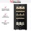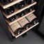 Электронное управление помогает быстро разобраться в том, как функционирует эта модель, и легко настроить все необходимые параметры. На дисплее отображаются данные, которые собирают датчики в камере. Лампочки, расположенные внутри, хорошо подсвечивают бутылки. Всего полок, на которых можно разместить коллекцию, в шкафу 4 шт.