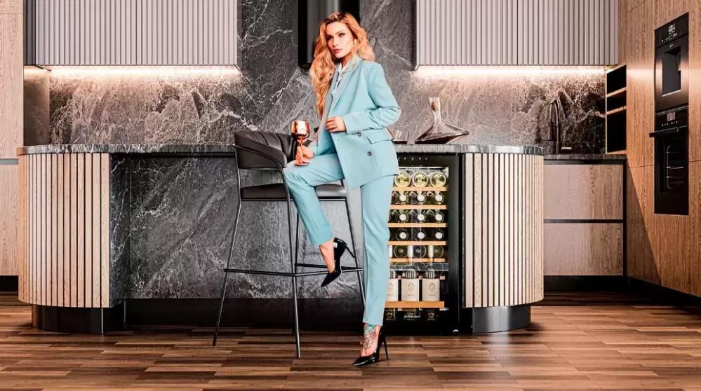 Фронтальный элемент с двойным стеклопакетом и УФ-защитой защищает содержимое от вредного воздействия света и повышает теплоизоляцию. Сенсорное управление с цифровым дисплеем позволяет точно задавать желаемую температуру и отслеживать её изменение. Небольшой уровень шума — примерно 40 дБ — делает прибор почти незаметным в бытовой среде, а один компрессор и экономичный класс B с годовым потреблением около 97 кВт·ч подтверждают сбалансированное энергопотребление.