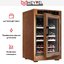 Производители предлагают винные шкафы, оснащенные одной, двумя, тремя и четырьмя камерами, которые могут располагаться как друг под другом, так бок и бок. Самые популярные — однокамерные модели, ассортимент которых особенно широк, но втором месте — двухкамерные. Над заметить, что количество камер не зависит напрямую от габаритов изделия: например, однокамерные модели увеличенных габаритов — далеко не редкость. Их высота может варьироваться в пределах от 14 см до 219 см, а ширина — от 13 см до 150 см.