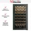 Стеклянная дверь — дополнительный изящный штрих к общему дизайну модели. Специальное покрытие защищает вино от влияния ультрафиолетовых лучей, которые проникают, если шкаф находится в солнечной комнате. Хранение становится еще безопаснее и герметичнее благодаря нескольким слоям стекол. Цвет корпуса — черный.