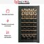 Электронное управление помогает быстро разобраться в том, как функционирует эта модель, и легко настроить все необходимые параметры. На дисплее отображаются данные, которые собирают датчики в камере. Лампочки, расположенные внутри, хорошо подсвечивают бутылки. Всего полок, на которых можно разместить коллекцию, в шкафу 8 шт.