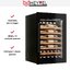 Стеклянная дверь — дополнительный изящный штрих к общему дизайну модели. Специальное покрытие защищает вино от влияния ультрафиолетовых лучей, которые проникают, если шкаф находится в солнечной комнате. Цвет корпуса — черный. Дверь можно перевесить на другую сторону, поэтому вариантов размещения его в доме становится больше.
