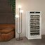 Стеклянная дверь — дополнительный изящный штрих к общему дизайну модели. Специальное покрытие защищает вино от влияния ультрафиолетовых лучей, которые проникают, если шкаф находится в солнечной комнате. Хранение становится еще безопаснее и герметичнее благодаря нескольким слоям стекол. Цвет корпуса — белый.