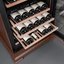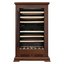 Стеклянная дверь — дополнительный изящный штрих к общему дизайну модели. Специальное покрытие защищает вино от влияния ультрафиолетовых лучей, которые проникают, если шкаф находится в солнечной комнате. Хранение становится еще безопаснее и герметичнее благодаря нескольким слоям стекол. Цвет корпуса — орех.