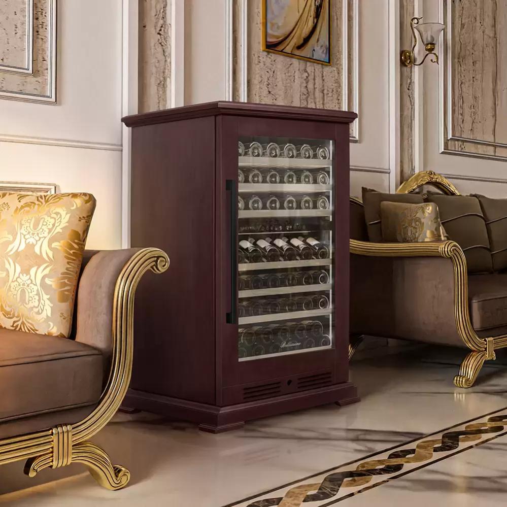 Винные шкафы — домашняя техника, относящаяся к средней и высокой ценовой категории. Разнообразие дизайна и расцветок позволяет подобрать модель для самых взыскательных покупателей. Отдельно стоящие модели в классическом стиле, с корпусами из натурального дерева с тонировкой или без нее отлично смотрятся и дома, и в офисах. Производители предлагают модели из различных пород дерева во всех оттенках коричневого цвета, от самых светлых до темных — орех, бук, дуб, венге, зебрано. Широко представлены модели в корпусах из красного дерева, в том числе интересных оттенков «red wine» и «red chery». В некоторых моделях сочетаются дерево и металл или два вида дерева — как, например «вишня/дуб» у шкафов IP.