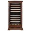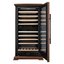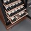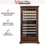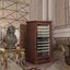 Стеклянная дверь — дополнительный изящный штрих к общему дизайну модели. Специальное покрытие защищает вино от влияния ультрафиолетовых лучей, которые проникают, если шкаф находится в солнечной комнате. Хранение становится еще безопаснее и герметичнее благодаря нескольким слоям стекол. Цвет корпуса — орех.