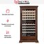 Электронное управление помогает быстро разобраться в том, как функционирует эта модель, и легко настроить все необходимые параметры. На дисплее отображаются данные, которые собирают датчики в камере. Лампочки, расположенные внутри, хорошо подсвечивают бутылки. Всего полок, на которых можно разместить коллекцию, в шкафу 9 шт.