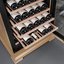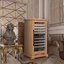 Стеклянная дверь — дополнительный изящный штрих к общему дизайну модели. Специальное покрытие защищает вино от влияния ультрафиолетовых лучей, которые проникают, если шкаф находится в солнечной комнате. Хранение становится еще безопаснее и герметичнее благодаря нескольким слоям стекол. Цвет корпуса — бук.