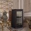 Электронное управление помогает быстро разобраться в том, как функционирует эта модель, и легко настроить все необходимые параметры. На дисплее отображаются данные, которые собирают датчики в камере. Лампочки, расположенные внутри, хорошо подсвечивают бутылки. Всего полок, на которых можно разместить коллекцию, в шкафу 9 шт.