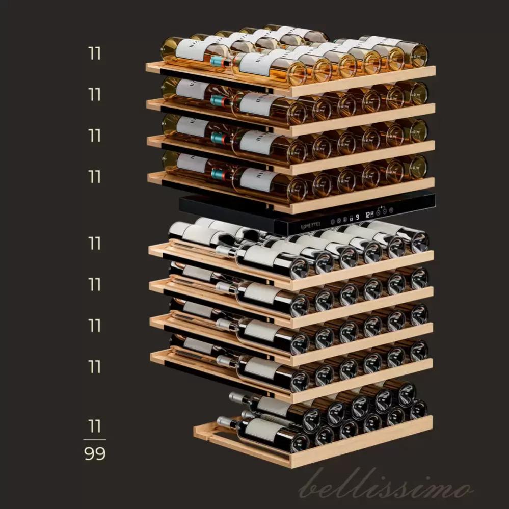 Двухтемпературные предназначены для хранения в разных условиях красного и белого вина. Трехтемпературные — для белого, красного, игристого. Мульти — система хранения из более чем трех зон с разным климатом.