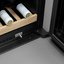 Встраиваемые холодильники для вина оснащаются специальной системой вентиляции: охлаждающая система у них находится в нижней части корпуса спереди. На такие устройства не навешивается мебельный фасад: дверца с затемненным стеклом остается на виду и открывается на достаточно широкий угол для свободного выдвижения деревянных полок.
