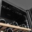 Электронное управление помогает быстро разобраться в том, как функционирует эта модель, и легко настроить все необходимые параметры. На дисплее отображаются данные, которые собирают датчики в камере. Лампочки, расположенные внутри, хорошо подсвечивают бутылки. Всего полок, на которых можно разместить коллекцию, в шкафу 11 шт.