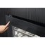 Стеклянная дверь — дополнительный изящный штрих к общему дизайну модели. Специальное покрытие защищает вино от влияния ультрафиолетовых лучей, которые проникают, если шкаф находится в солнечной комнате. Цвет корпуса — черный/серый. Доводчик делает открытие и закрытие плавным.