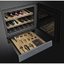 Встраиваемые холодильники для вина оснащаются специальной системой вентиляции: охлаждающая система у них находится в нижней части корпуса спереди. На такие устройства не навешивается мебельный фасад: дверца с затемненным стеклом остается на виду и открывается на достаточно широкий угол для свободного выдвижения деревянных полок.