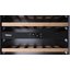 Встраиваемые холодильники для вина оснащаются специальной системой вентиляции: охлаждающая система у них находится в нижней части корпуса спереди. На такие устройства не навешивается мебельный фасад: дверца с затемненным стеклом остается на виду и открывается на достаточно широкий угол для свободного выдвижения деревянных полок.