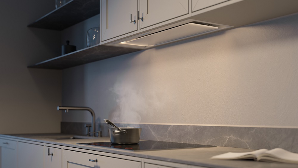 Вытяжки, встраиваемые в столешницу — эффективная инновация, которая подойдет для установки в кухне любой площади. Такие вытяжки размещаются за варочной поверхностью или рядом с ней. В отключенном состоянии всасывающая панель находится под столешницей, но после включения одной или нескольких конфорок она автоматически выдвигается при помощи специального лифтового механизма. Загрязненный воздух улавливается, не успевая распространиться по помещению. Когда вытяжка убрана, на виду остается только сенсорная панель управления. Недостатком подобных моделей является только сравнительно высокая цена.