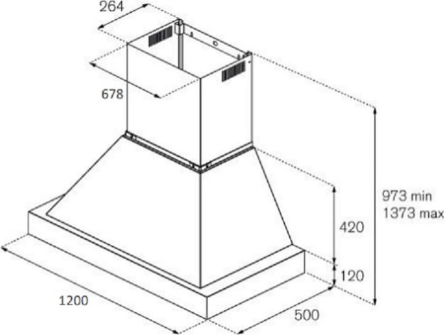 Для удобства пользователя следует выбирать вытяжку так, чтобы глубина даже самого большого купола не превышала глубину столешницы. У большинства современных купольных моделей глубина точно равна ширине, поскольку и стандартные варочные поверхности чаще всего имеют квадратную форму. Это значит, что вытяжка должна располагаться точно над поверхностью плиты, так, чтобы их оси совпадали. Стандартные размеры глубины таким образом могут составлять 30, 45, 50, 60, 80, 90, 100, 120 см.