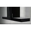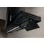 Островная вытяжка эффективно работает в режиме отвода и циркуляции. Благодаря возможности очистки воздуха средствами угольного фильтра — нет необходимости вести трубы для подключения к вентиляционному каналу. Модель представлена в классическом черном оттенке, что расширяет варианты комбинирования с цветовыми решениями интерьера. Благодаря необычной конструкции увеличена площадь всасывания, при этом вытяжка смотрится небольшой. Часть основания можно использовать в качестве полочки для специй или декора.