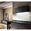 Нестандартная форма вытяжки смотрится эффектно в любом интерьерном решении. Черная поверхность обеспечивает широкий спектр цветового сочетания, что расширяет возможности при планировании дизайна. Ширина модели составляет 120 см, что подходит для варочных панелей или плит с пятью конфорками. Производителем предусмотрено три скорости и интенсивный режим для сложных ситуаций. За безопасную эксплуатацию устройства отвечают алюминиевые фильтры. Воздух проходит через специальные сетки, в которых задерживаются грубые частицы, например, жир. Таким образом, двигатель надежно защищен от налипания грязи, тем самым повышая эффективность работы и срок службы устройства.