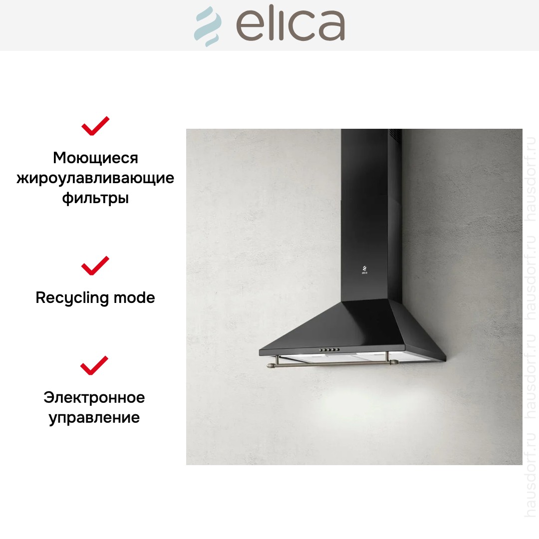 В числе инноваций, предложенных компанией Элика, — уникальный ароматизатор воздуха Marie и очиститель воздуха Snap, позволяющий избавиться от пыли, аллергенов и неприятных запахов. Большинство изделий производится на родине бренда — в Италии, хотя некоторые производства вынесены в другие страны. В настоящее время компания предлагает покупателям не только все виды вытяжек, от массивных купольных до изящных подвесных, но и суперсовременные варочные панели с вытяжкой, встроенной в столешницу, а также аксессуары, в том числе уникальные сменные угольные фильтры.